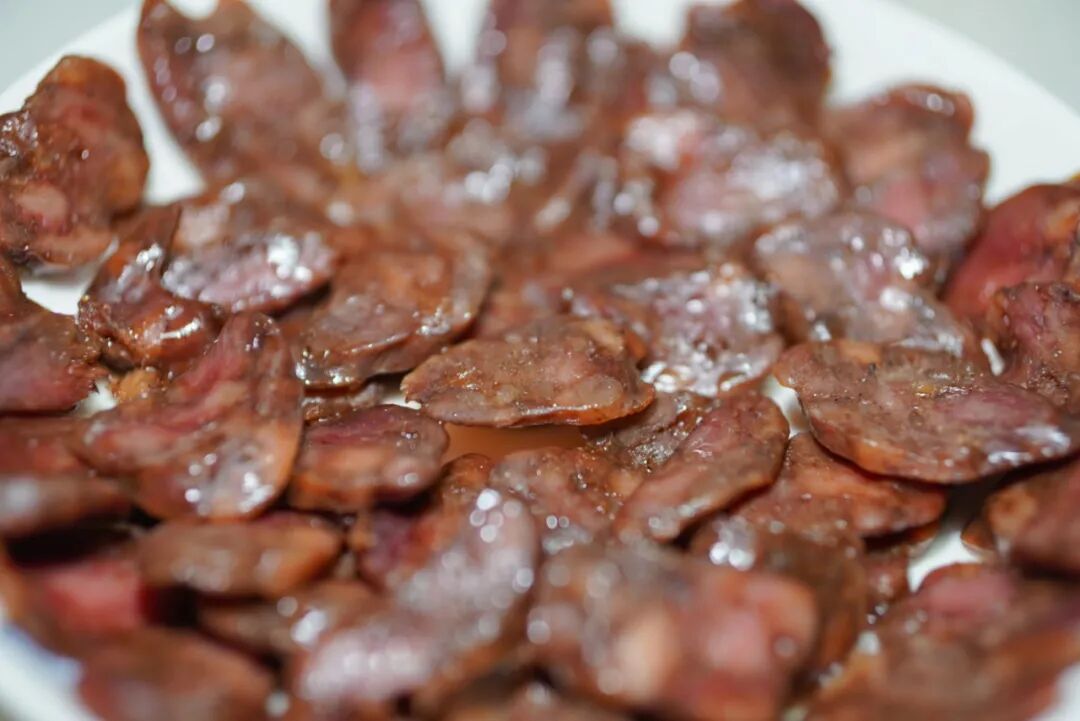 灌制环节最是热闹,全家齐上阵,手摇灌肠机转得飞起,孩子负责捆扎排气,一串串红润的香肠挂在屋檐下风干,海风与阳光共同酝酿出独有的鲜醇。晾晒十来天后取下,蒸上一盘,油花四溢,佐酒下饭都绝了,这才是过年该有的烟火气。